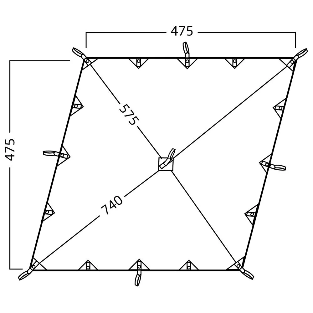 Kari Diamond 20 is shaped differently than a regular square tarp, thus offering a diamond-shaped design to fit the entrance of Nordisk Legacy tents like the Asgard teepee family.