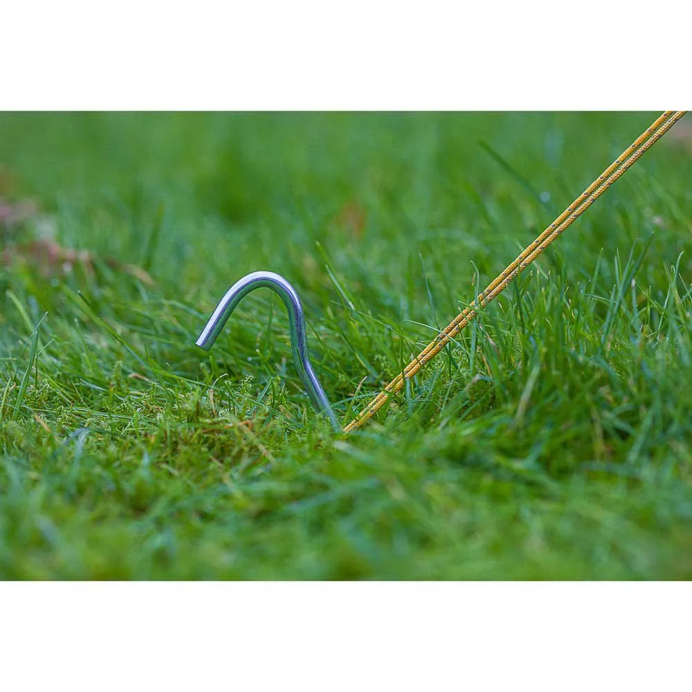 The steel skewer is a classic and simple design with a variety of uses and a relatively low weight for a steel peg. It is a great choice as a backup peg or as an extra for guy ropes or a tarp. The steel skewer works smoothly in most soils, and it also works well in rocky and stony areas thanks to the slim design. It is made of 5mm galvanized steel, making it strong and hard to bend, it is equipped with a large hook for easy attachment of guy rope. The steel skewer is easy to use and easy to drag up again making it a great all-rounder.