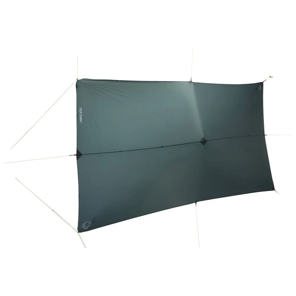 The Voss SI tarp range is a lightweight, versatile and durable option for extending your camp. It is available in three different sizes, covering 9, 14 and 20m2. The square shape offers numerous options for use in almost any situation depending on location and weather. Every tarp has multiple attachment points; reinforced along edges and on the double loops on the surface, allowing them to be set up with walking poles, guy lines or similar. Voss SI tarps can be used as a stand-alone shelter, to add extra protected space to your camp or use to extend the dry area of your tent, depending on preference.