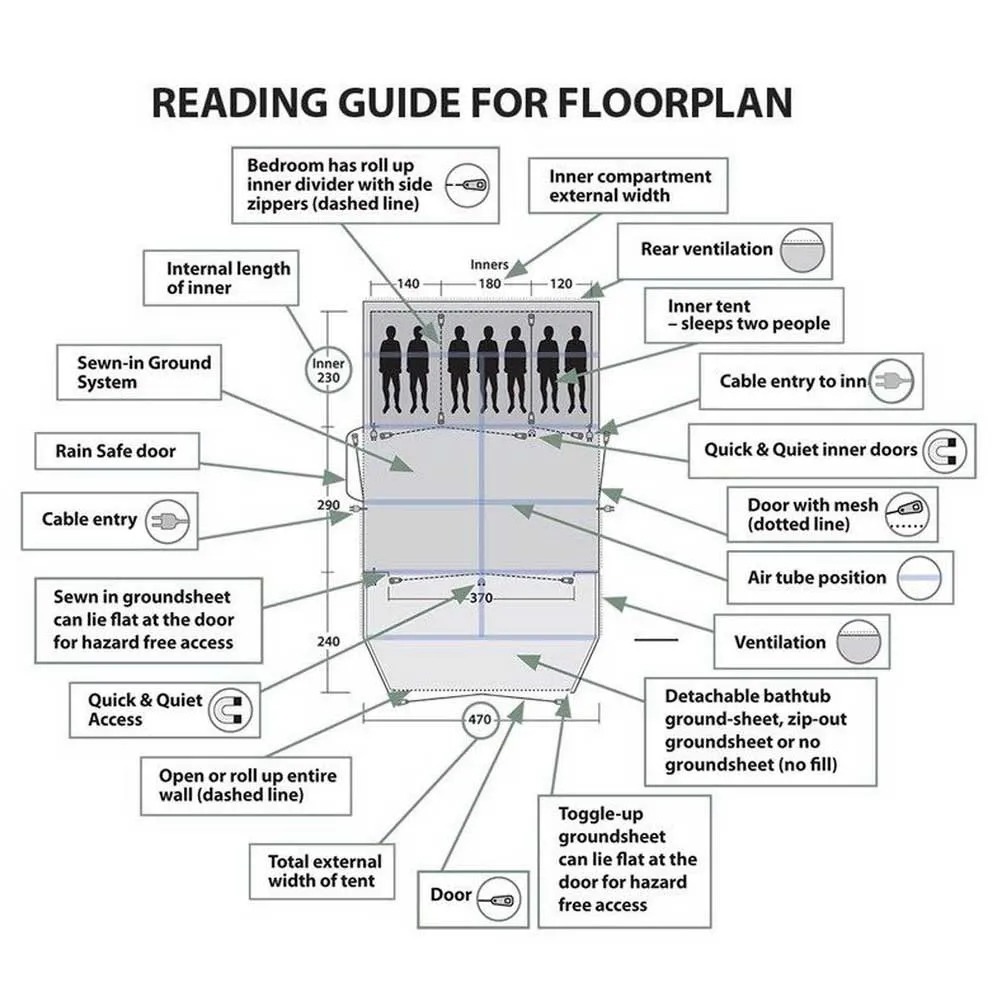 The removable access zone allows you to fix the tent on any side and orient it in the direction you want.