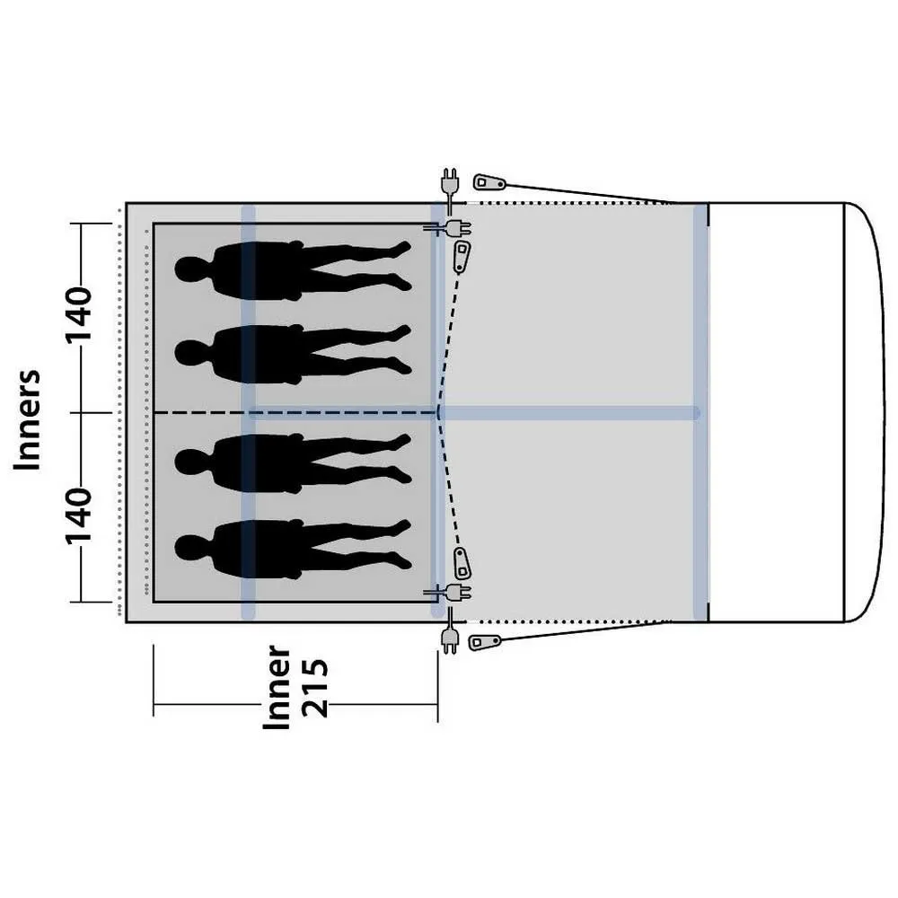 The Outwell Inner Jonesville 440SA gives you a bedroom to fit the larger Jonesville 440SA drive away awning. The inner is easy to set up and take down, and is the perfect size to make use of all available space. The inner sleeps up to four people, can be divided with the supplied internal divider and offers privacy from the main awning. Ideal for growing families, visiting guests or as a spacious bedroom for yourself.