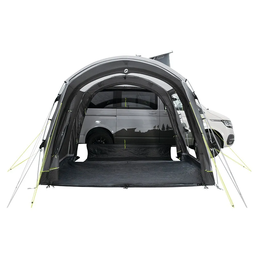-Families and friends sharing touring holidays will appreciate the versatile space offered by the tunnel tent design of the fast-pitching Outwell Waystone 24 drive-away vehicle awning.