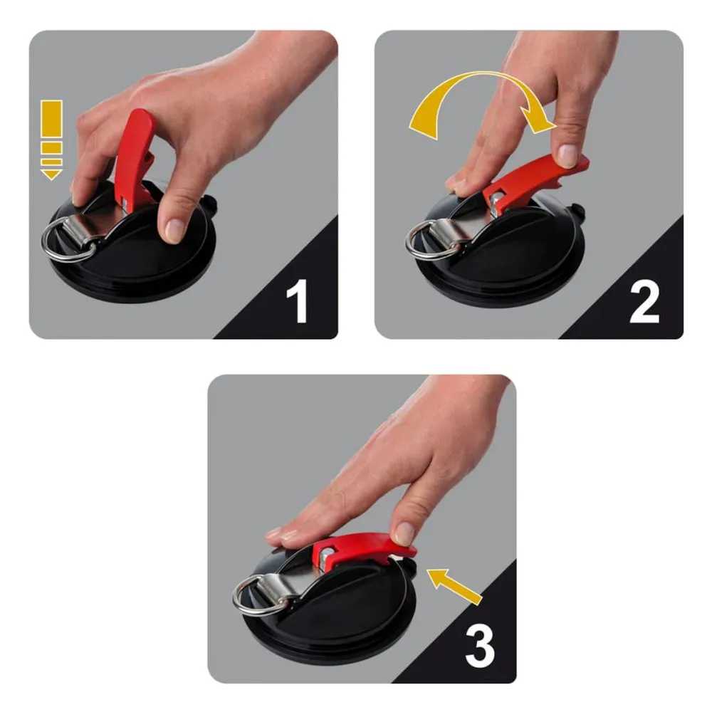 The suction cup is made of plastic and has a sturdy, plastic lever.
